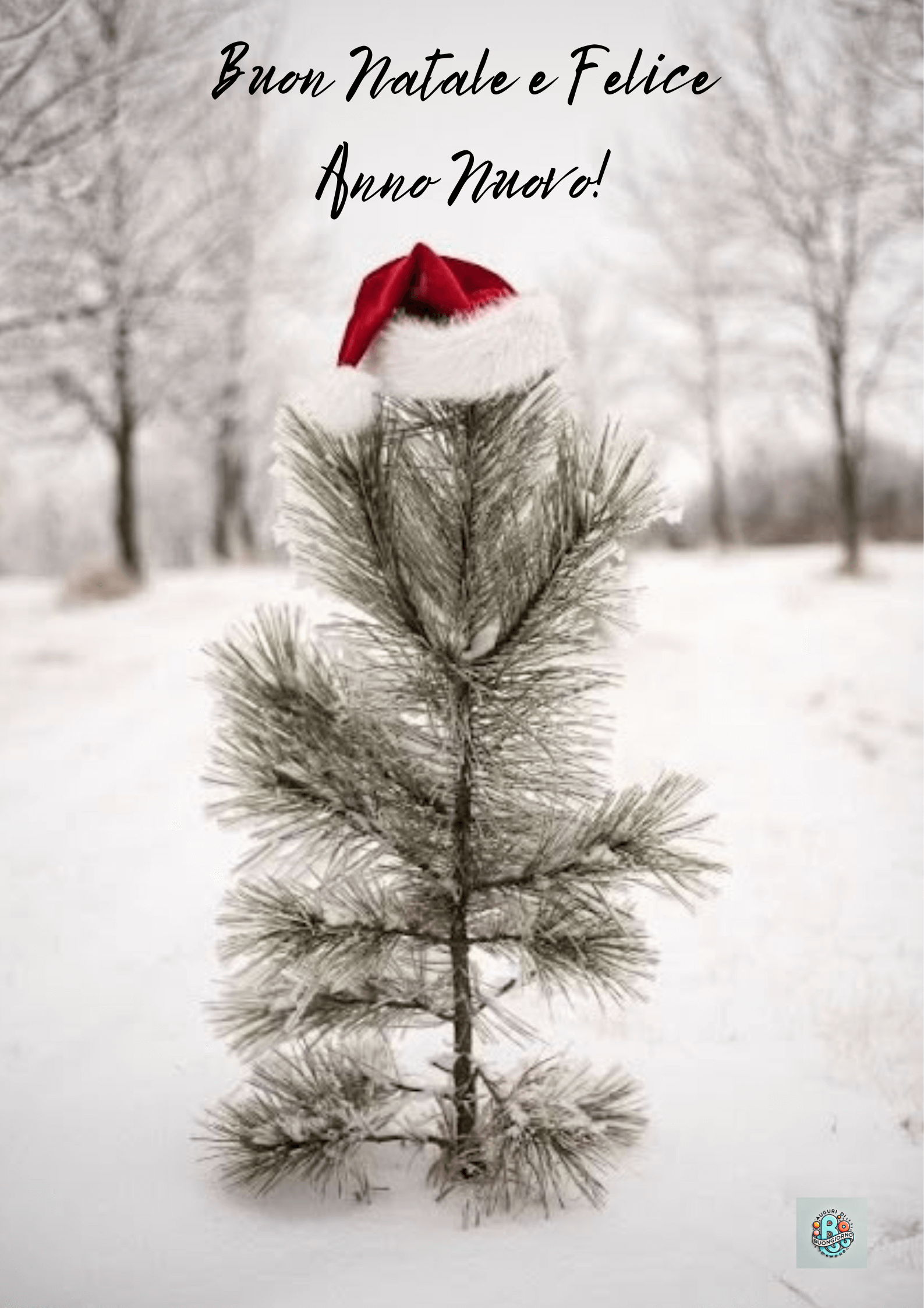 Un albero di Natale innevato con un cappello rosso e bianco, simbolo della stagione festiva. Questo scatto festivo evoca un’atmosfera serena, accogliendo il Buon Natale e il Nuovo Anno con calore e gioia. Le Festività e Ricorrenze di fine anno sono il momento ideale per riflettere, condividere e celebrare insieme, creando ricordi speciali da custodire per sempre.