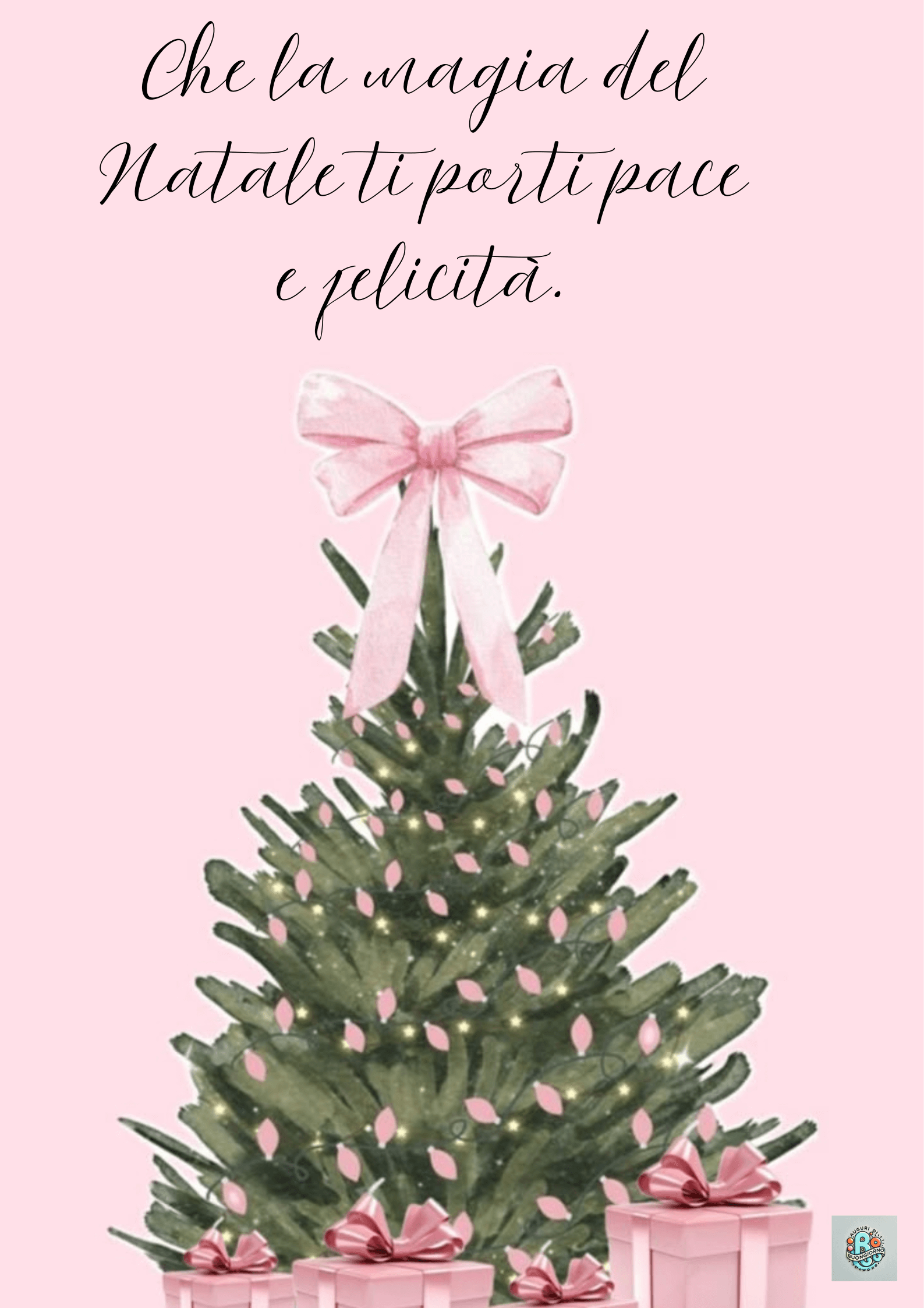 Un albero di Natale decorato con luci e foglie rosa, accompagnato da regali rosa con fiocchi. Un’immagine che evoca un Natale dolce e festoso, pieno di magia e serenità. Il Buon Natale si inserisce perfettamente in un periodo di Altre Celebrazioni, dove ogni decorazione, ogni regalo e ogni gesto contribuiscono a creare un’atmosfera unica di amore e condivisione.