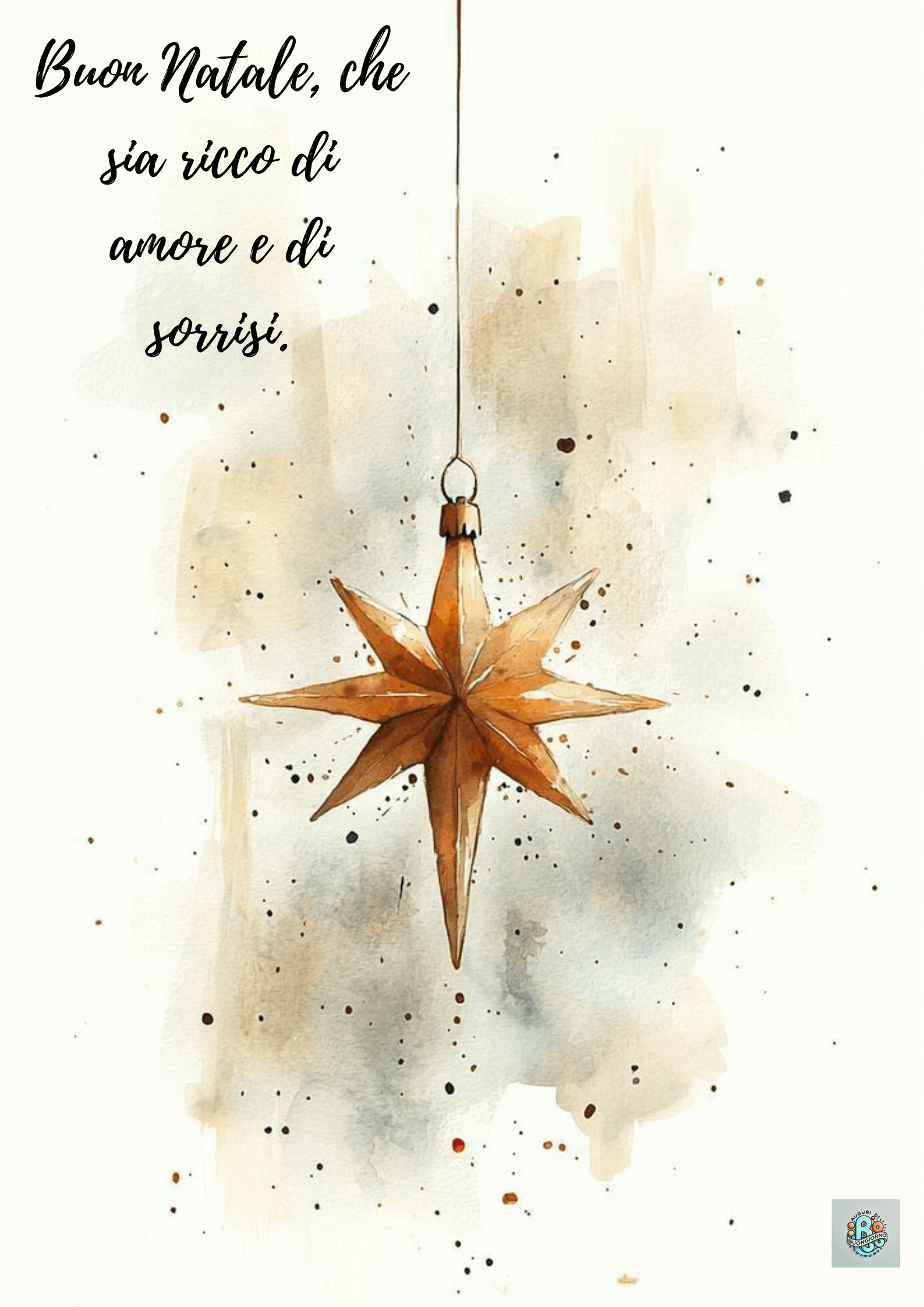 Una stella dorata appesa, circondata da sfumature di colore ad acquerello. Un’immagine delicata che trasmette l’essenza del Natale, ricco di amore e sorrisi.