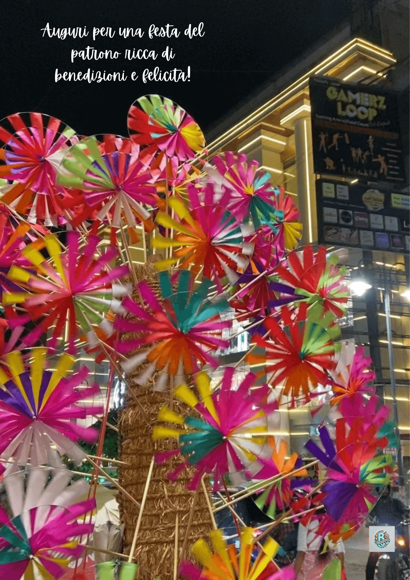 Un momento vibrante di festa, con girandole colorate che adornano le strade durante la Festa Patronale, creando un’atmosfera di gioia e benedizione. Un simbolo di felicità condivisa, celebrato anche nelle Altre Celebrazioni.