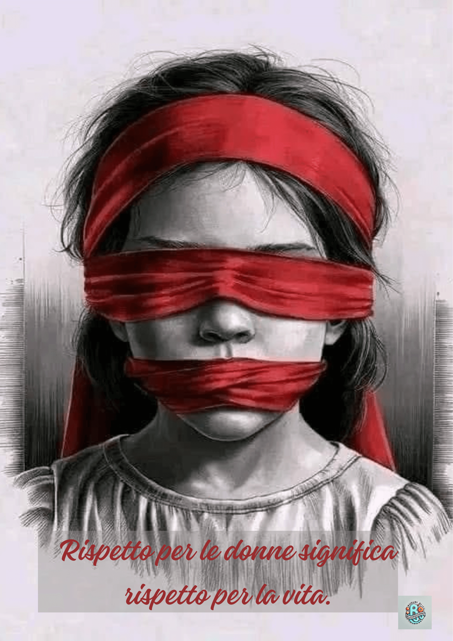 In questa rappresentazione simbolica, una giovane ragazza bendata e imbavagliata denuncia la violazione dei diritti umani. La Giornata contro la violenza sulle donne ci ricorda che senza rispetto per le donne, manca il rispetto per la vita. I Giorni Memoriali Speciali sono occasioni cruciali per promuovere uguaglianza e dignità.