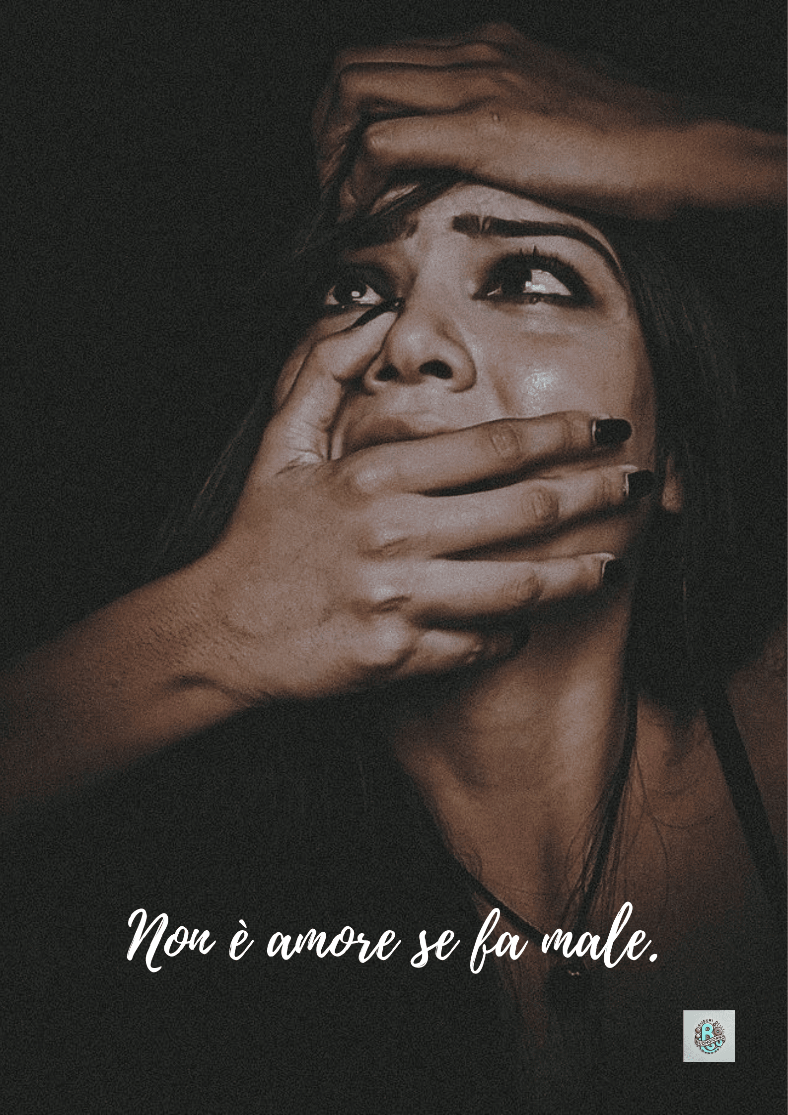 Lo sguardo impaurito della donna e le mani che la opprimono rivelano una violenza nascosta. L’amore autentico non fa male; ogni relazione deve basarsi sul rispetto, non sul controllo. Prevenzione della violenza domestica è essenziale per promuovere una società sana e libera.