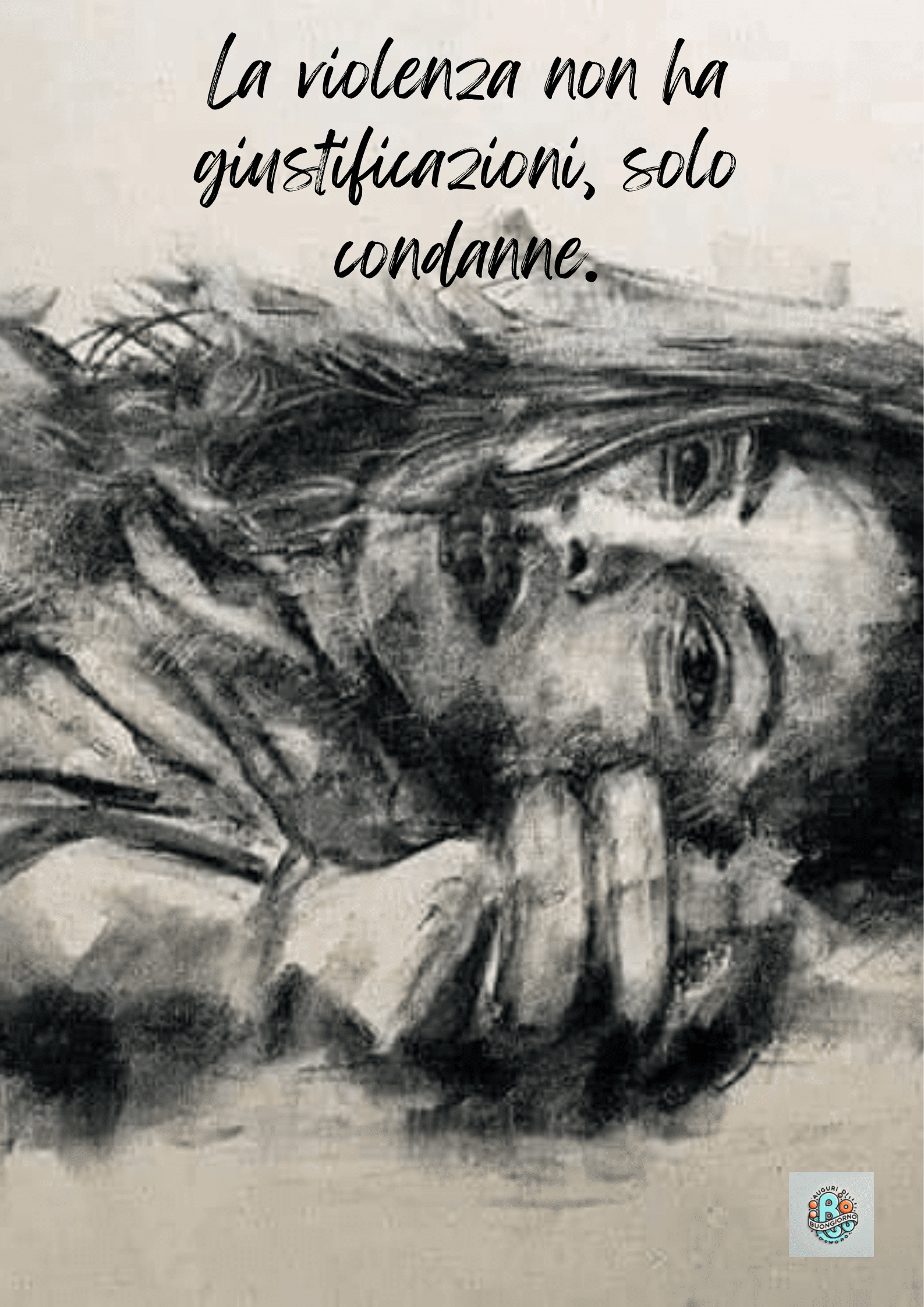 In questo disegno drammatico, una donna è immobilizzata dalla violenza, un richiamo forte all’assenza di giustificazioni per simili atti. La violenza, infatti, non ha mai scuse valide: può solo essere riconosciuta, affrontata e condannata. È attraverso la consapevolezza collettiva che si costruisce una società giusta.