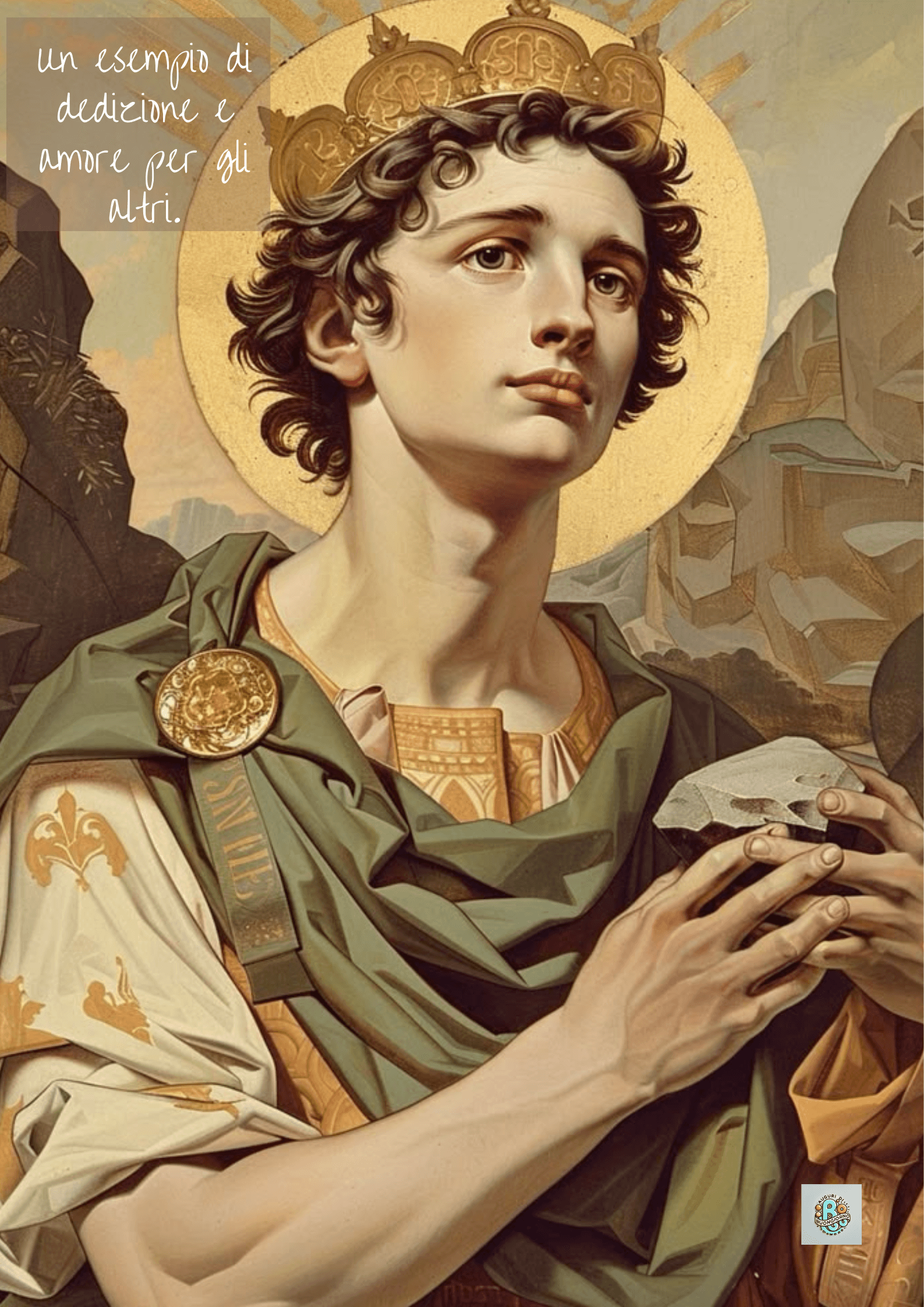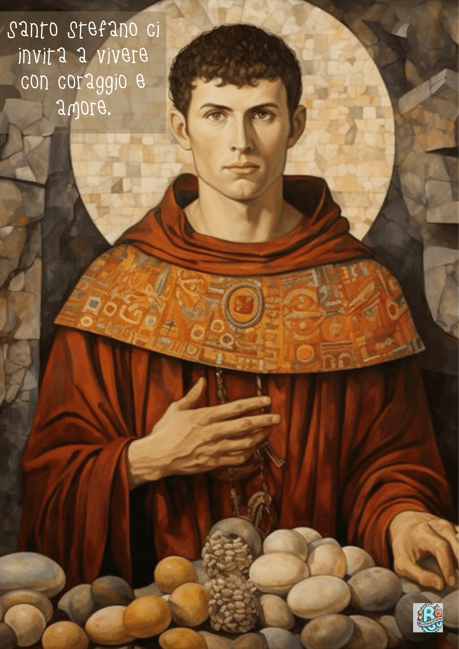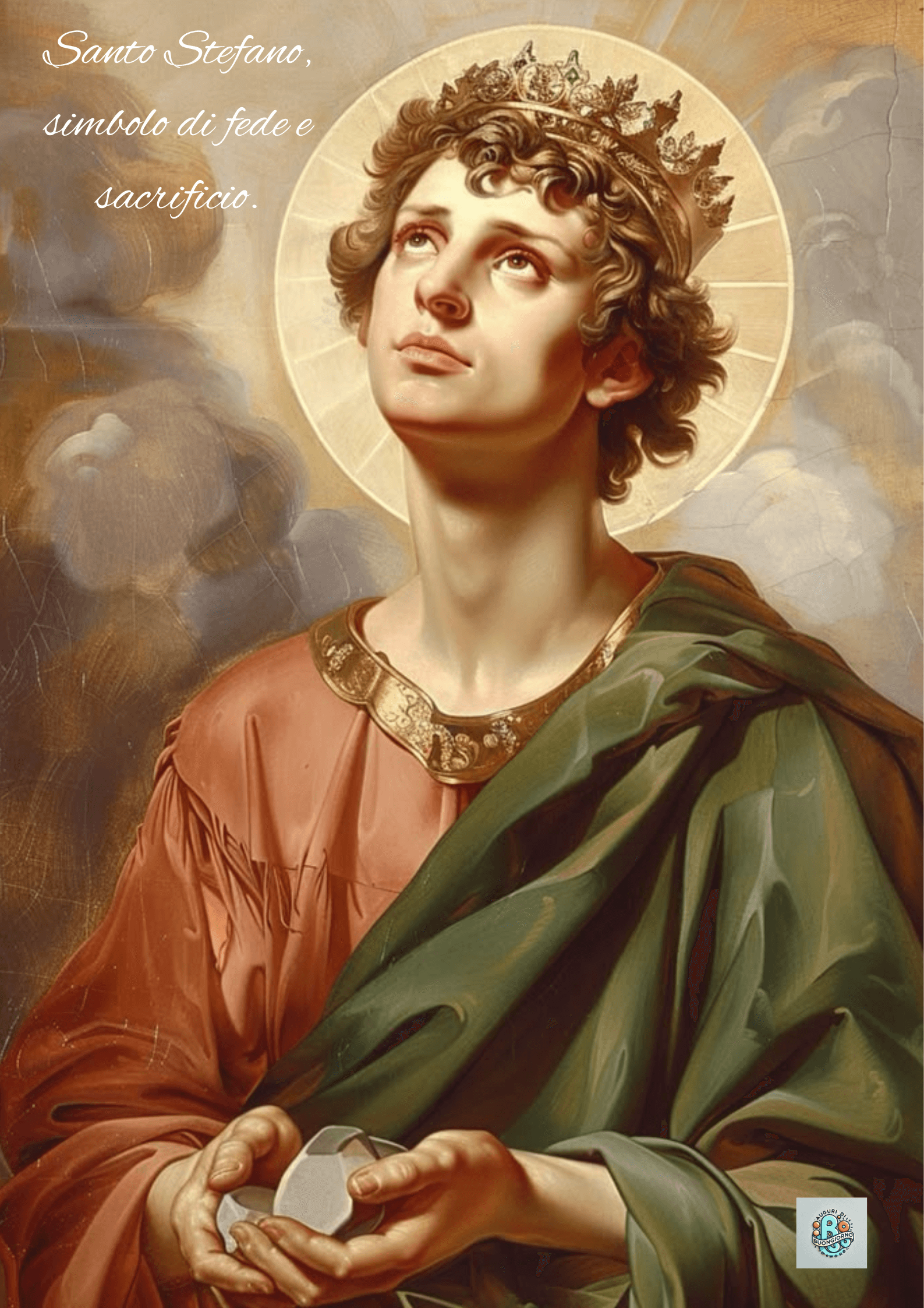 Un’immagine di Santo Stefano, seduto con una corona, riflette sulla bontà e giustizia, simboleggiando la sua devozione nel giorno che celebra il martirio. Un tributo alle Feste Cristiane e alla ricorrenza di Santo Stefano.